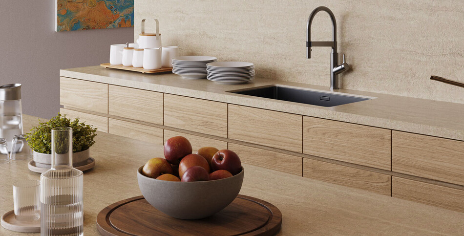 Quartz remains a benchmark for durability and low maintenance. Caesarstone’s quartz surfaces are made using a combination of loose quartz, resins, and pigments. Other benefits include: