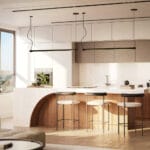The classic-style structure of the cabinets blends in perfect harmony with the exposed wood of the island...