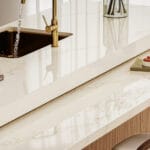 The classic-style structure of the cabinets blends in perfect harmony with the exposed wood of the island and floors. This creates a refined looking kitchen that is both rustic and romantic.