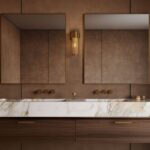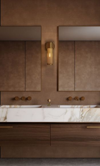 A rich, earthy brown surface with a leathered finish enhanced by discrete darker accents that create a slightly oxidized effect. Subtle variations in tone enhance its depth, creating a surface that is as inviting as it is distinctive.