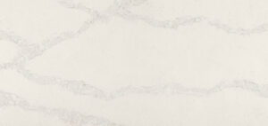A bright white base traversed by an ebb of bold veins in subtle whites and pale greys, touched by cloud-like silvery sediments dotted in greenish yellow, merging organically into the surface that evokes peaceful purity and soothing sophistication.